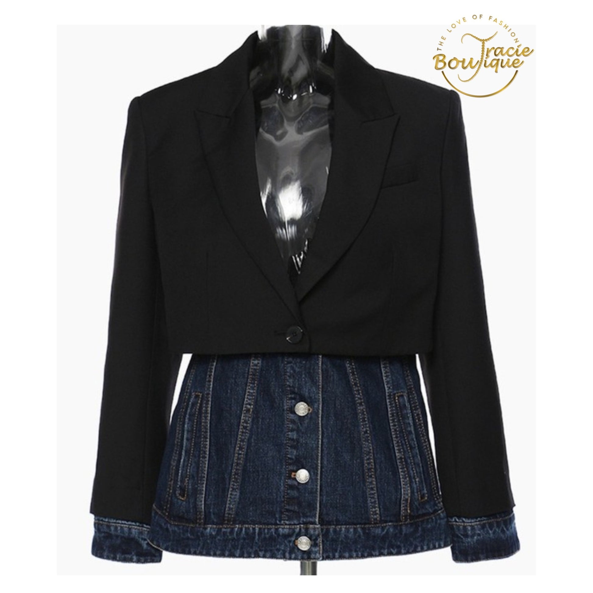 Introducing the Half Business Denim Jacket, featuring a traditional blazer cut with a bold, non-traditional look. Made with a unique combination of denim and premium fabrics, this blazer will elevate your style and make a statement. Embrace a new level of sophistication and stand out from the crowd.