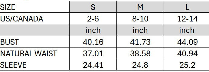 Sold in US sizes S(2-6), M(8-10), L(12-14)